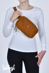 The stylish urban waist bag BAAGL Go in Caramel is lightweight, durable, and ready for everyday use. It offers an integrated organizer, a key carabiner, water‑repellent, quick‑drying material, and a 2 l capacity at just 135 g. The GRS certification confirms sustainable production.