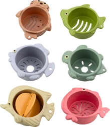 These cups are large, lightweight, and easy to grasp with small hands, which is great for learning to hold and manipulate objects. Children can build a tower, nest the cups into each other, or use them during bath time – thanks to the holes, they allow water to be poured. This gives the cups a sensory dimension and they function perfectly as a bath accessory as well.