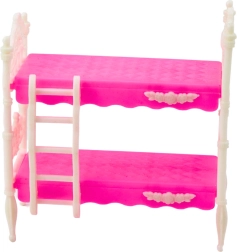 In this set, you will find a 12 cm tall doll dressed in shiny, multi-colored clothes, a cute dog, and a functional bunk bed with a ladder – ideal for playing house, pet care, and creating everyday scenes.