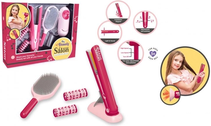 Discover the magic of the hairstyling world with this amazing set from Plejo. This straightener is designed to be easy to handle and safe for small hands. Little hairdressers can make their dolls look chic and stylish: