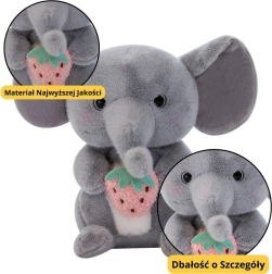 Plush Elephant with Strawberry is an adorable and extremely soft toy that captivates with its appearance and quality craftsmanship. Made from pleasant grey plush, the toy is safe for the youngest children.