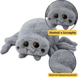 The plush spider is an original and very effective toy, which will surely attract children who like unusual plush toys, insects, and natural curiosities. Made from soft, velvet-like plush in a deep grey color, it gives it a slightly mysterious yet friendly and fun appearance. The toy features carefully crafted details – it has several pairs of shiny eyes of different sizes, soft, rounded limbs, and a gently embroidered face with a smile, making it exceptionally cute and non-frightening even for younger children.