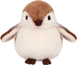 The plush bird, made from pleasant and soft plush, resembles a small sparrow with rounded shapes, a tiny beak, and wide wings. Thanks to its natural color scheme, it offers classic charm and a very realistic look.