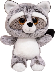 This cute plush raccoon immediately grabs attention with its charming appearance and big, bright eyes. It is made from extraordinarily soft and fluffy material, giving it a realistic yet friendly look. The contrasting colors - gray, white, and black - mimic the classic appearance of a raccoon, while the raised paw adds to its playful character.