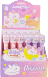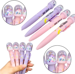 The cute ballpoint pen features a figure placed in a transparent dome with floating stars, sparkles, and other decorative details. It creates a unique design that catches the eye of every little creative mind.