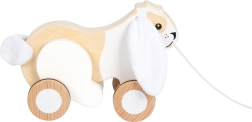 An adorable bunny made from quality solid wood will charm any child with its soft, crinkly ears and tail. Enhances motor skills and encourages children to crawl and walk with a string that's easy to pull. Rubberized wheels ensure smooth and quiet movement.