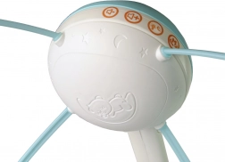 The mobile can be attached to the crib or stroller. The light image projection attracts the child's attention. The mobile offers volume control and with its adjustable holder, it fits most cribs.
