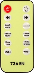 Operation is ensured via remote control, which regulates lighting, volume, and sounds. Functions include: