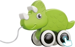 The green pull-along dinosaur offers a safe and fun activity for children from 18 months. It is designed to support movement coordination, motor skills, and balance. With the string, you can easily lead the dinosaur around the house or garden, teaching the child independence and movement autonomy.