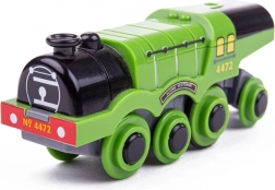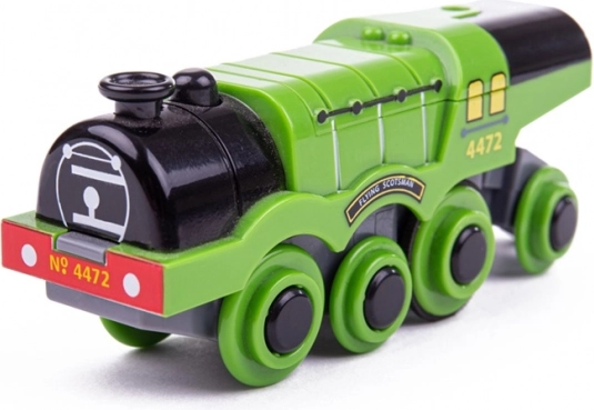 An iconic replica of the steam locomotive FLYING SCOTSMAN for wooden railway sets delights with strong pulling power, automatic forward drive, and simple one-button control. Thanks to the magnetic coupling system, it can pull multiple carriages, is compatible with most wooden tracks, and helps develop children’s imagination and motor skills.