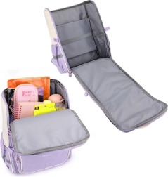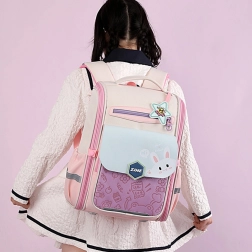The pastel school backpack with a bunny motif is the perfect accessory for children who appreciate functionality and a unique look. Its pink-purple colors and gentle details make it stand out at first glance.