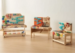 The MASTERKIDZ wooden STEM XXL workbench combines play and learning in one. The sturdy wooden frame with durable finish and a perforated worktop enable limitless experimentation—from building gear mechanisms to marble runs. The clear storage for tools and parts helps keep things organized so kids can fully focus on creating.