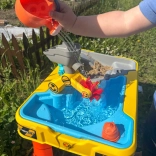 The dual chamber allows simultaneous play with water and sand—ideal for sensory exploration and endless construction play scenarios.