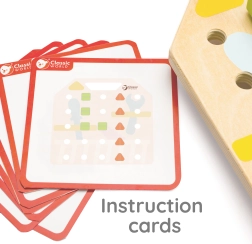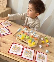 Children can create various shapes using screws on the wooden board, which is very entertaining and beneficial for their growth. It improves coordination, concentration, and wrist and hand strength. Template cards offer a variety of challenges that children can try, and together with parents, they can attempt to build patterns from memory. This activity also contributes to recognizing colors and shapes.