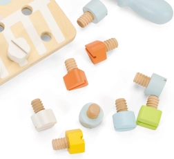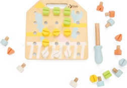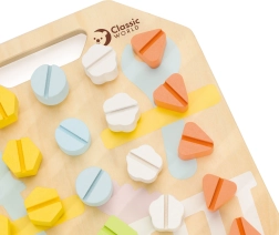 Wooden board with colorful screws from Classic World is a toy designed to develop children through fun. Children can create various shapes using screws, which contributes to the development of their coordination and motor skills.