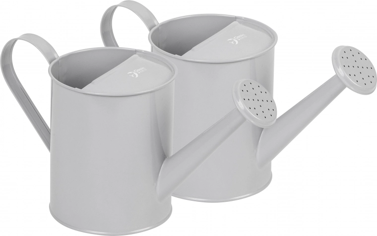 The set includes two watering cans made from durable metal, designed for longevity and resistance to damage. The silver color and minimalist design suit any interior or exterior. An ergonomic handle and long, narrow spout allow precise watering of plants even in less accessible places.