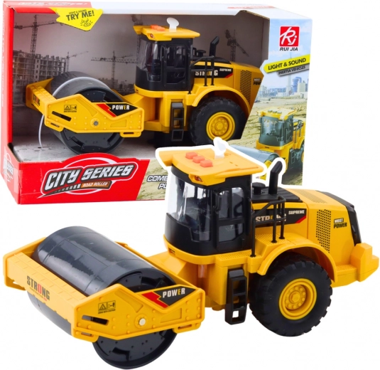 Road Roller with Rotating and Steerable Roll with Lights and Sounds - Yellow