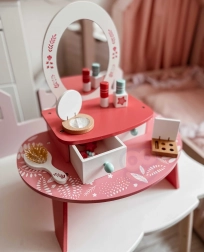 Discover the world of beauty with this wooden vanity from Tooky Toy, ideal for every little princess.