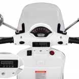Iconic VESPA style scaled down for kids. The model offers a comfortable seat, stabilizing wheels for safe beginnings, and precise workmanship with attention to detail. Two 12 V motors (30 W) and a 2× 6 V battery ensure smooth starts and an enjoyable ride.