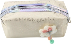 A stylish cosmetic bag with a sparkling design is an ideal accessory for school and everyday use. The elegant beige color and unique look with a bow catch the eye at first glance.