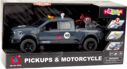 The pickup with motorcycle is designed for young automotive enthusiasts and offers features that enrich play and stimulate imagination. The opening doors and rear tailgate make loading the motorcycle easy, allowing kids to create various play scenarios—from rescue missions to off-road races.