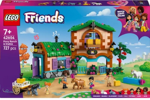 Kick-start creative play with the LEGO Friends Pony Ranch and Stable set, featuring a stable with facilities, a working hay hoist, a wagon, 2 mini-dolls, 2 micro-dolls, a cat figure, and 3 ponies. Kids aged 7+ will enjoy caring for horses, friendship stories, and a building challenge with the LEGO Builder app.