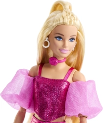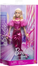 Discover the world of fashion with the Barbie Deluxe Model in a sparkling pink outfit. A creative corset with puff sleeves, shiny pants, and coordinated accessories create a perfectly matched look that stands out at first glance. The doll has long blonde hair suitable for brushing and styling, and thanks to the joints, she easily strikes runway-worthy poses.