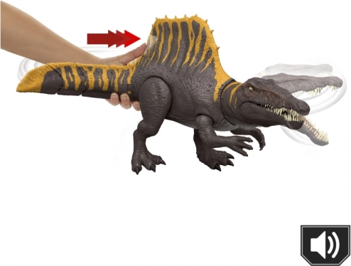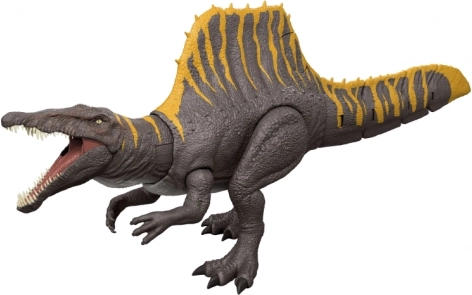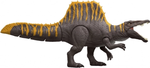 The robust Spinosaurus figure brings plenty of action to kids’ and collectors’ hands alike. With its striking back sail, detailed skin texture, and opening jaws, this dinosaur looks lifelike and ready to attack. Sound effects and the tail “thrasher” mechanism add dynamic excitement to play.