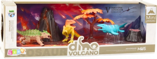 Travel back in time with this fascinating set of dinosaur figures! This complete package offers the opportunity to create realistic scenes from the Mesozoic era, perfect for entertainment, education, and imaginative development. It includes 3 dinosaur figures, a volcano, a stump, and a colorful tree that add the atmosphere of the ancient era.