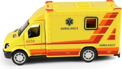 A premium children’s ambulance in a striking yellow color, featuring sturdy construction from metal and durable plastic. Thanks to the pull-back drive, it quickly springs into action—just pull and release. Realistic details, prints, and transparent windows inspire imaginative, rescue-themed play.