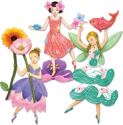 Discover the enchanting world of fairies with the DJECO creative kit. Six beautiful illustrations to color transform into moving figures once connected with eyelets, encouraging children to keep playing and tell their own stories. The simple process and included instructions ensure that even beginners will enjoy crafting.