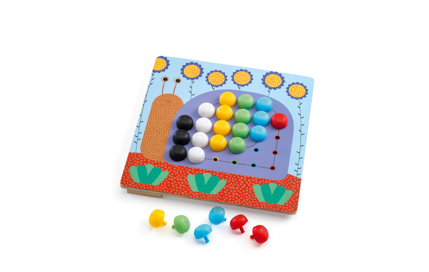 Discover the creative world with Djeco First Mosaic Animals, which supports children's imagination and fine motor skills through play with colorful pieces.