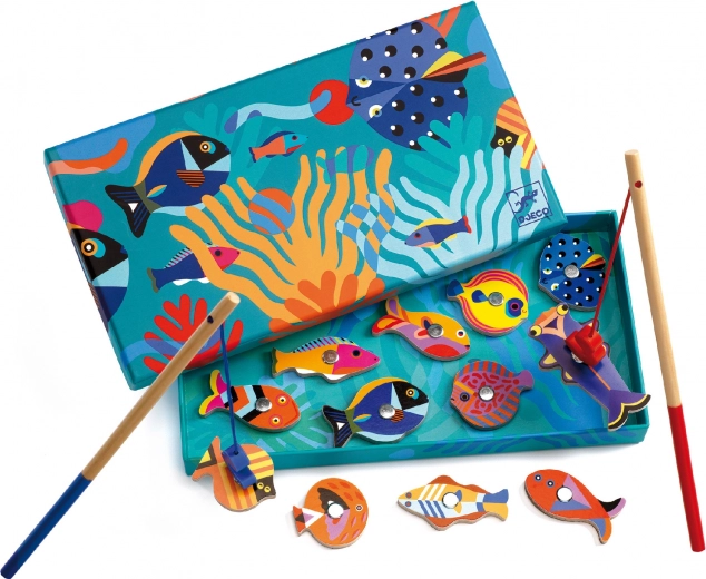 Discover a fantasy world with DJECO Coral Fishing, where children can catch colorful fish with magnetic rods. This game offers: