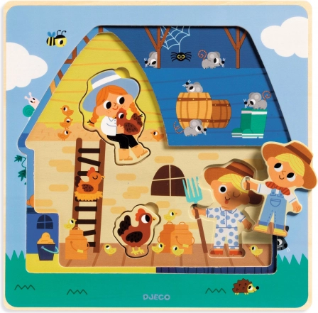 Discover the fun and educational three-layer wooden farm puzzlelarge pieces for the smallest hands. Each layer has a different color for easier assembly and better orientation. Delivered in a beautiful gift box. Made from FSC-certified wood.