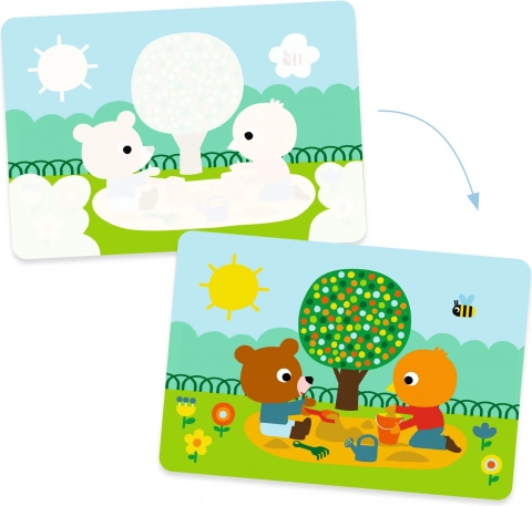 DJECO water coloring provides a unique and creative form of entertainment for children that combines art with discovery. By wetting the brush, colors appear on the paper as if by magic, and once dry, they disappear again. This means that children can develop their creativity over and over again without limitations.