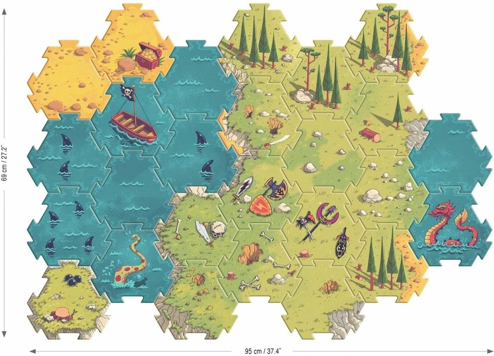 This original set combines the joy of puzzles with creative play. 26 large hexagonal pieces let you assemble a vast scene, while 4 vertical scenery pieces on wooden stands add a 3D effect to the battle. The pieces are made from very sturdy cardboard with FSC® certification, so they withstand frequent play.