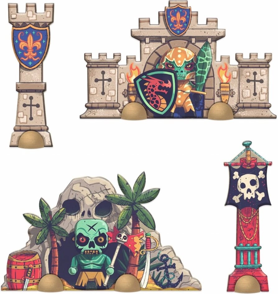 Discover the spectacular giant puzzle from DJECO that turns the floor into a thrilling battlefield. The set includes large, sturdy pieces made of FSC® cardboard and stable scenery on wooden stands for even more fun. Perfect for children aged 4+, it develops imagination, motor skills, and storytelling. Easy to store thanks to the beautiful box.