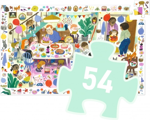 Experience a birthday party full of fun with the search puzzle from Djeco! Assembling the 53 pieces of this colorful puzzle will delight and challenge every child.