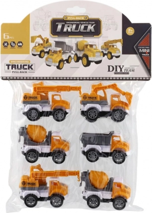 The set includes six mini construction cars, which are ideal for small builders. Each car is equipped with a pull-back drive, allowing for easy forward movement – just pull back and release.