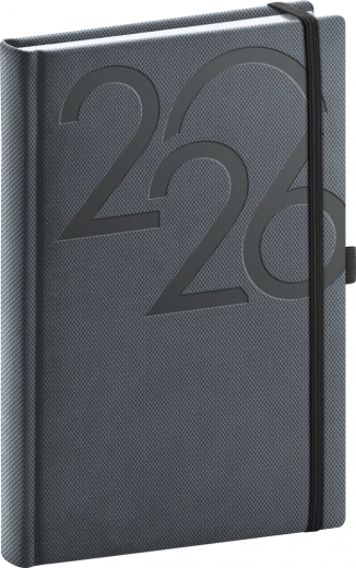 The Daily Diary Ajax 2026 in an elegant black color with a subtly textured surface and atypical embossing is ideal for professionals and students. This practical diary offers not only a daily schedule but also a pen loop and an elastic band.