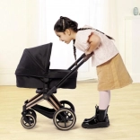 The Cybex doll stroller is designed for dolls to faithfully mimic the design of the famous Cybex Priam stroller. Its structure has an adjustable canopy, a removable protective cover, and a sturdy basket for storing doll accessories. The stroller is easy to fold, which makes it convenient to carry and store.