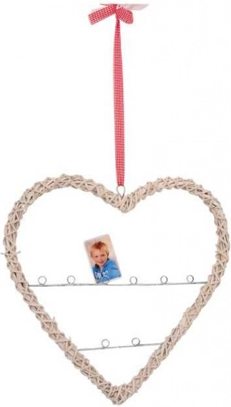 This decorative wicker heart with a white patina is an ideal choice for neat and creative display of your favorite moments. Thanks to the metal eyelets, you can conveniently hold up to 8 photos and swap them quickly anytime. The hanging bow in a red-and-white gingham pattern gives the piece a cozy, vintage touch.