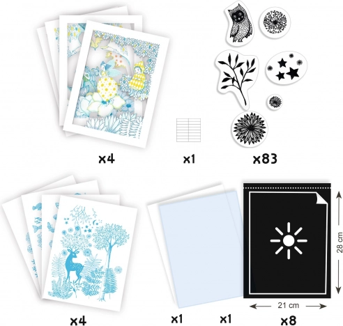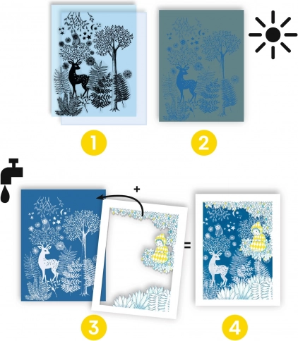 DJECO Creating on Photographic Paper - Au clair de la lune is a creative set that uses sunlight to create stunning shadow designs on photosensitive paper. It brings fun and the magic of creation for children and adults from 7 to 99 years old.