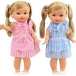 Adorable doll with braids and suspenders is ideal for every little girl. Her striped outfit with adornment will surely captivate every child's heart.