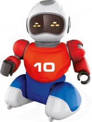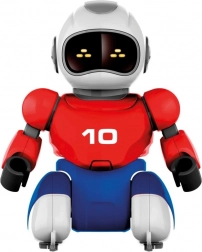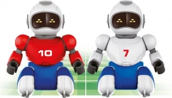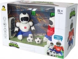 This toy is ideal for children aged 5 and up and is made from high-quality plastic. The package includes 2 robots, 2 controllers, 2 goals with field fencing, 2 USB charging cables, and an instruction manual. Each robot is 16 cm tall. Package dimensions are 36 x 24 x 19 cm.