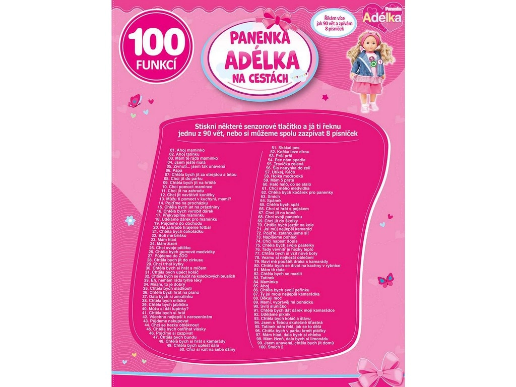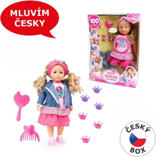 Discover the magic of the maternal role with the Adélka Doll. This unique doll is equipped with 90 Czech sentences such as "Mommy, tell me a story" or "I love you, mommy!", which this interactive toy utters. Additionally, it sings eight traditional Czech songs like "Holka modrooká" or "Skákal pes" and can also laugh. With each press on a selected spot, children experience hours of adventure.