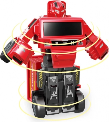 Robotic fire truck with flywheel, transforming from a car to a robot. Ideal for children 3+.