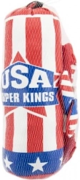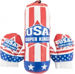 A fun and safe set for little athletes: a kids’ punching bag with gloves featuring the American flag motif. Ideal for burning energy, developing coordination, and playful activity. Lightweight and compact, easy to carry, and suitable from age 3.