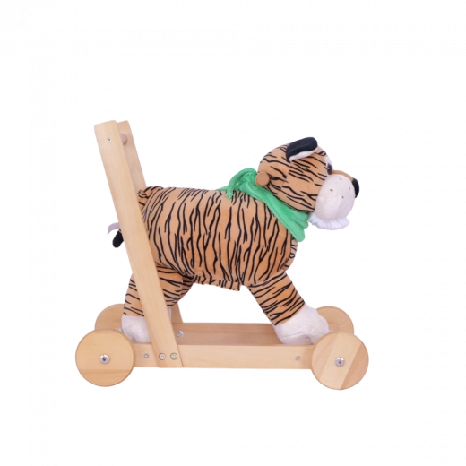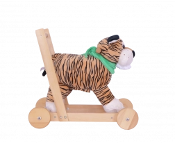 Its cheerful design, vibrant colors, and tiger appearance make this ride-on a beautiful addition to a child's room or playroom. The product is tested according to the strictest safety standards EN 71. With a gentle plush surface and rounded shapes, it's pleasant to touch and stimulates children's imagination.
