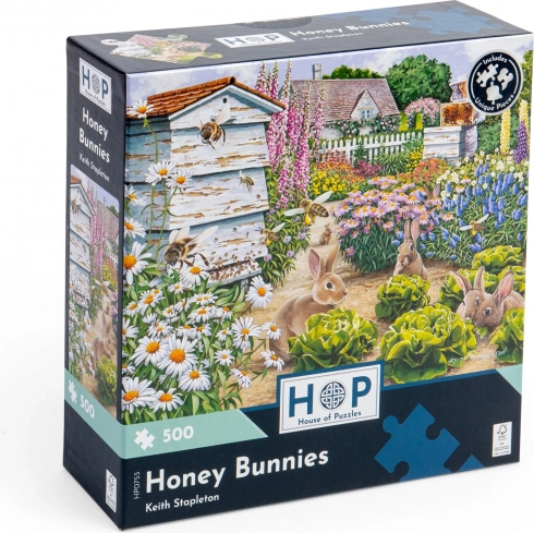Puzzle Sweet Rabbits with 500 pieces by House of Puzzles, known for unique piece shapes. A fun challenge for everyone.